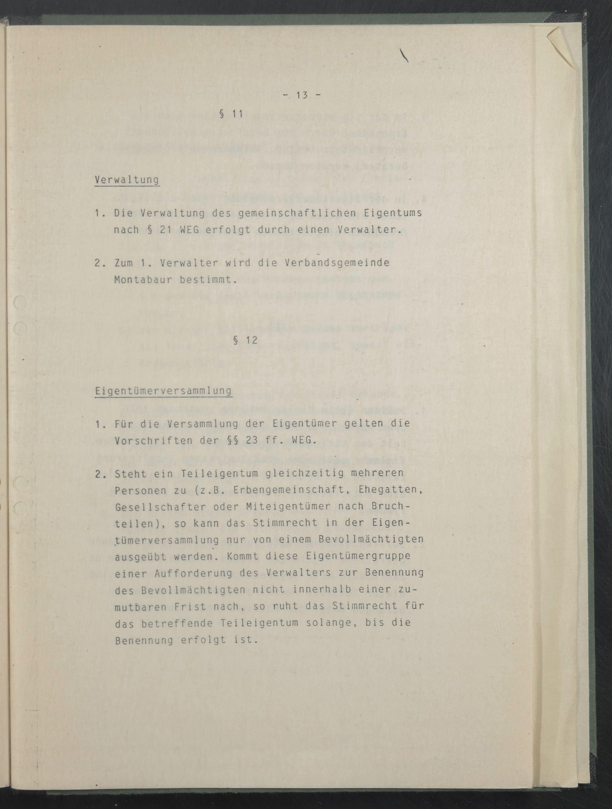 1. Die Verwaltung des gemeinschaftlichen Eigentums nach § 21 WEG erfolgt durch einen Verwalter.