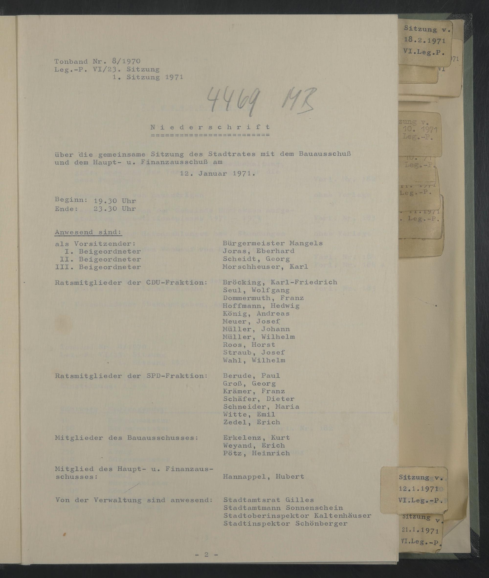 Tonband Nr. 8/1970 Leg.-P. Vl/2ß. Sitzung