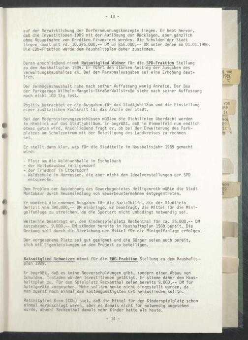 Er stellt dann klar, was für die Stadtteile im Haushaltsjahr 1989 gemacht wird: