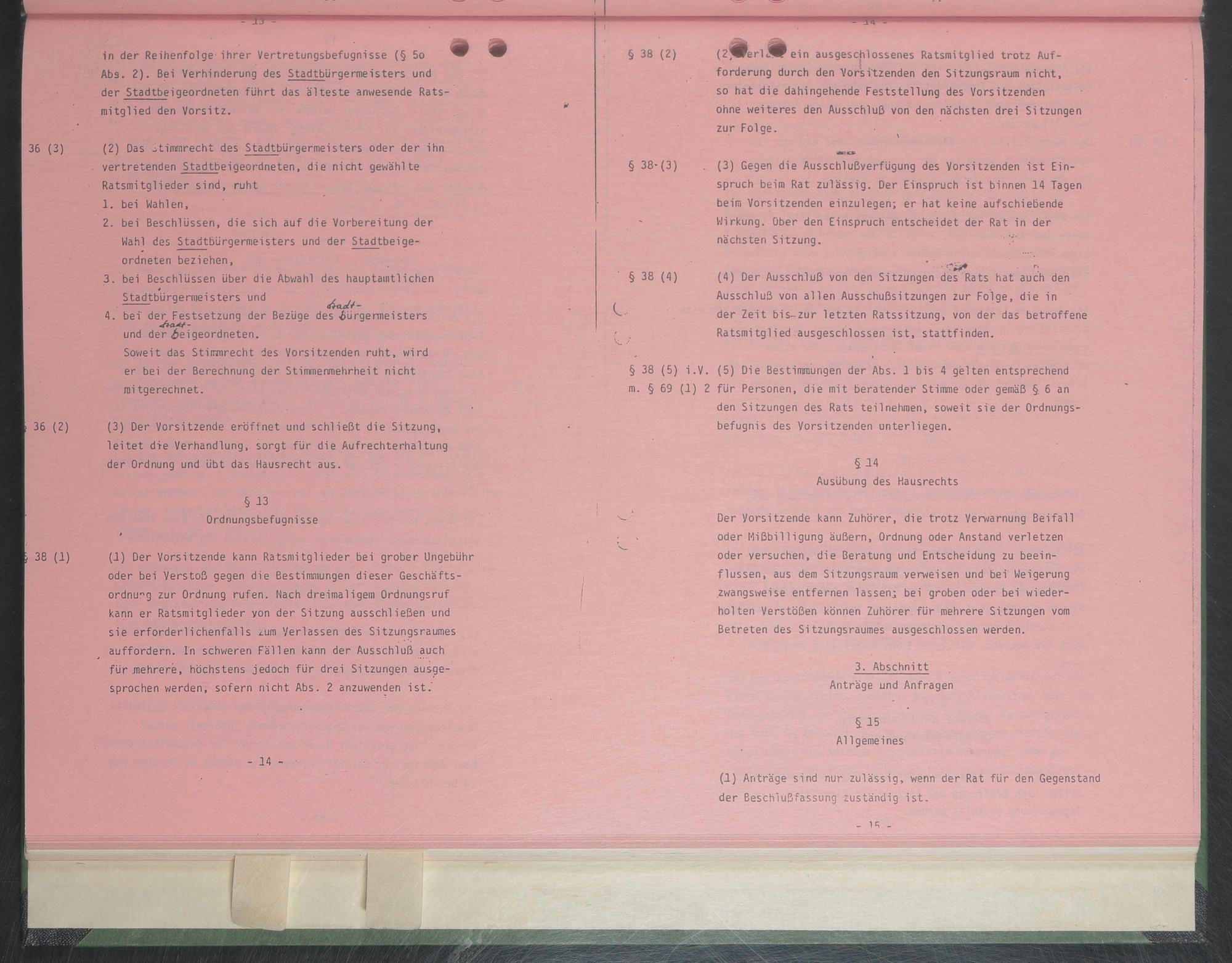 § 38 (4) (4) Der Ausschluß von den Sitzungen des Rats hat auch den