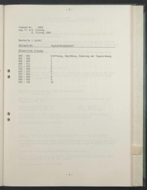 Tonband Nr. UHER Leg.-P. X/3. Sitzung