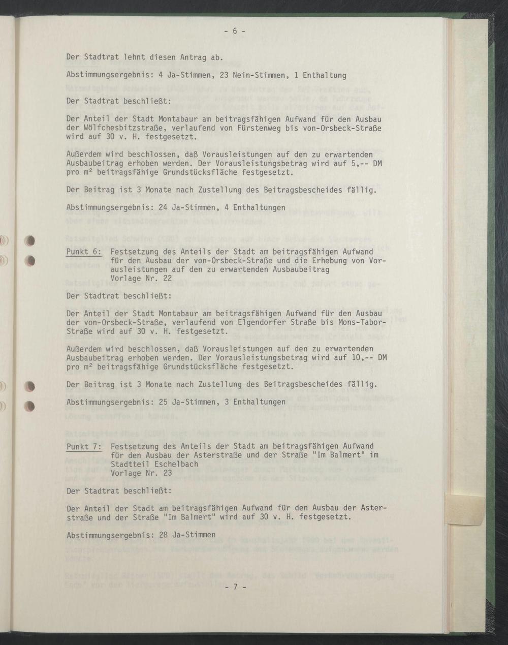 Punkt 7: Festsetzung des Anteils der Stadt am beitragsfähigen Aufwand für den Ausbau der Asterstraße und der Straße "Im Balmert" im Stadtteil Eschelbach Vorlage Nr. 23