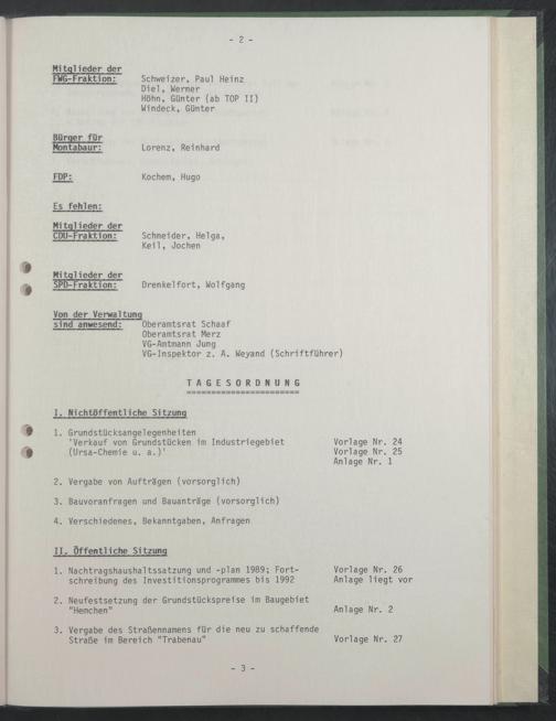 Schreibung des Investitionsprogrammes bis 1992 Anlage liegt vor