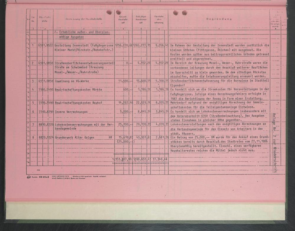 Ein Betr.ag von 25.000,— OM wurde für den Ankauf eines Grundstückes bereits durch Beschluß.des Stadtrates vom 27.11.1986