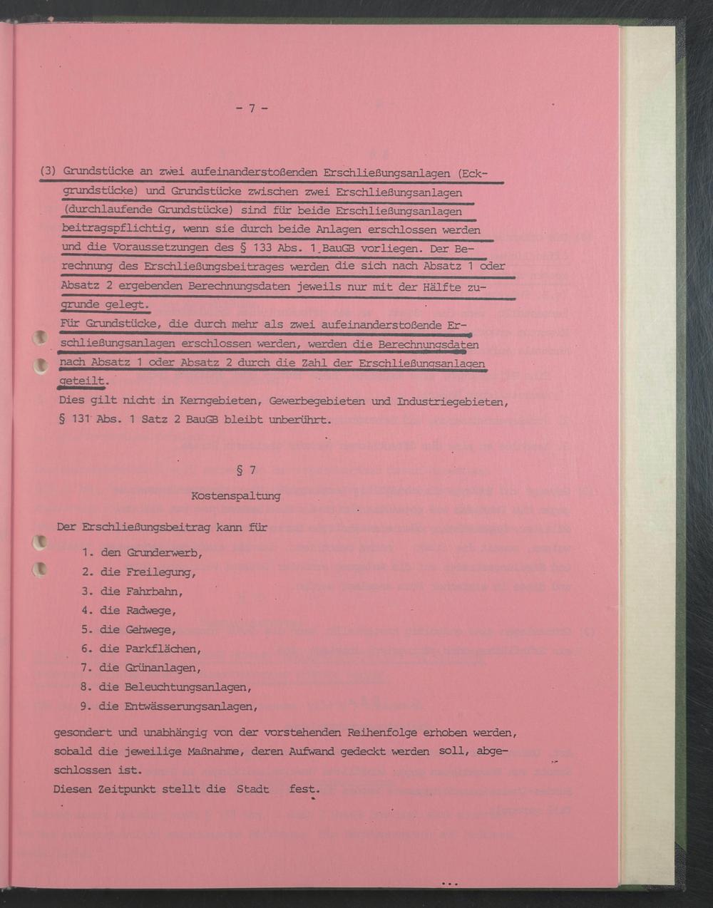 (3) Grundstücke an zwei aufeinanderstoBenden Erschließungsanlagen (Eck- grundstücke) und Grundstücke zwischen zwei Erschließungsanlagen (durchlaufen de Grundstücke) sind für beide Erschließungsanlagen