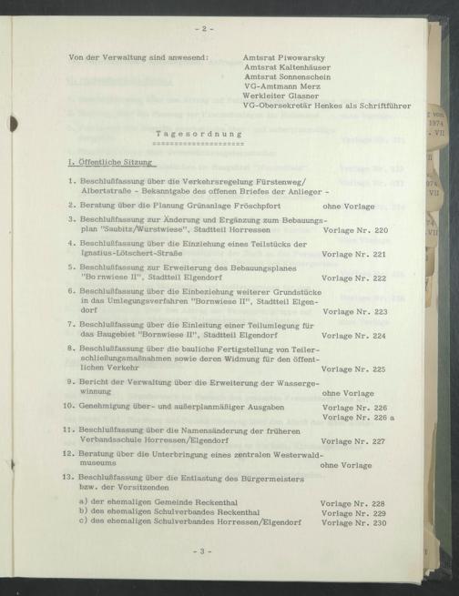 Amtsrat Piwowarsky Amtsrat Kaltenhäuser Amtsrat Sonnenschein VG-Amtmann Merz Werkleiter Glasner