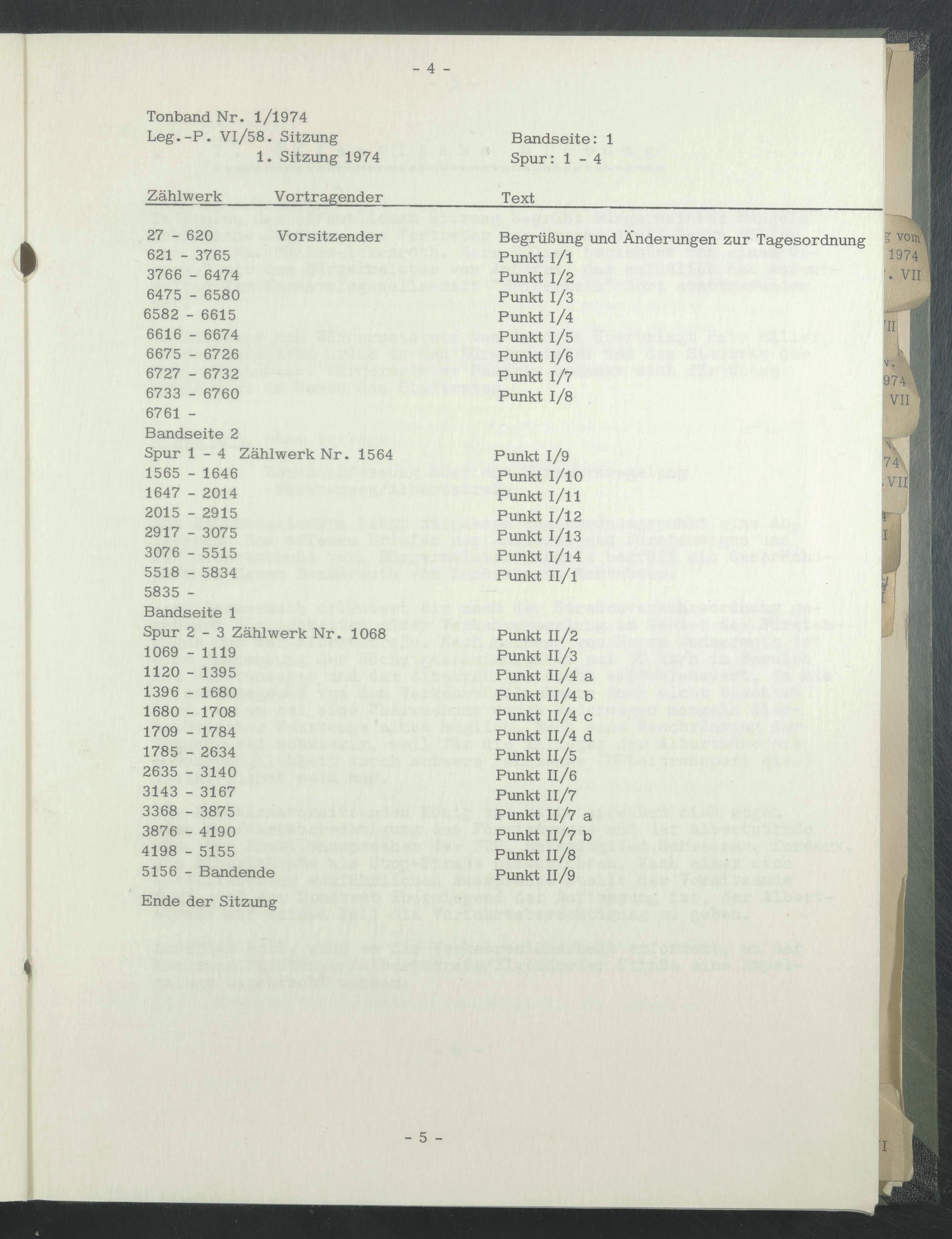 1. Sitzung 1974 Spur: 1 -4