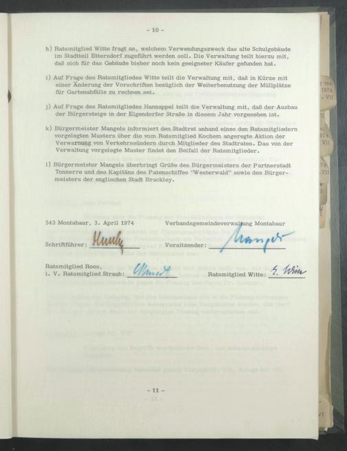 k) Bürgermeister Mangels informiert den Stadtrat anhand eines den Ratsmitgliedern vorgelegten Musters über die vom Ratsmitglied Kochern angeregte Aktion der Verwarnung von Verkehrssündern durch Mitglieder des Stadtrates. Das von der Verwaltung vor gelegte Muster findet den Beifall der Ratsmitglieder.