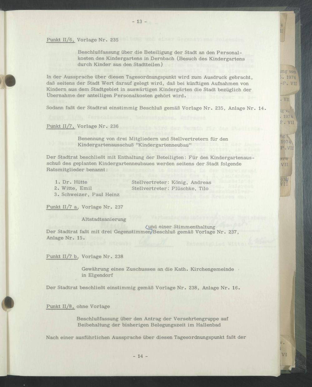 Sodann faßt der Stadtrat einstimmig Beschluß gemäß Vorlage Nr. 235, Anlage Nr. 14