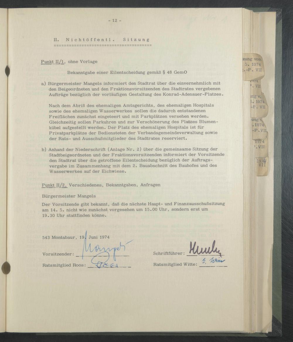 Punkt 11/2, Verschiedenes, Bekanntgaben, Anfragen Bürgermeister Mangels