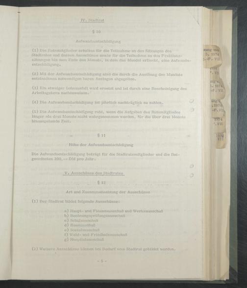 Die Aufwandsentschädigung beträgt für die Stadtratsmitglieder und die Beigeordneten 200, --- DM pro Jahr.