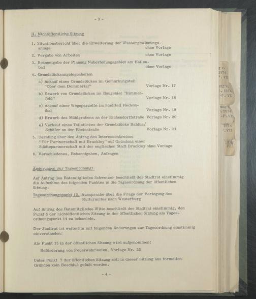 Unter Punkt 7 der öffentlichen Sitzung soll in dieser Sitzung aus formellen Gründen kein Beschluß gefaßt werden.