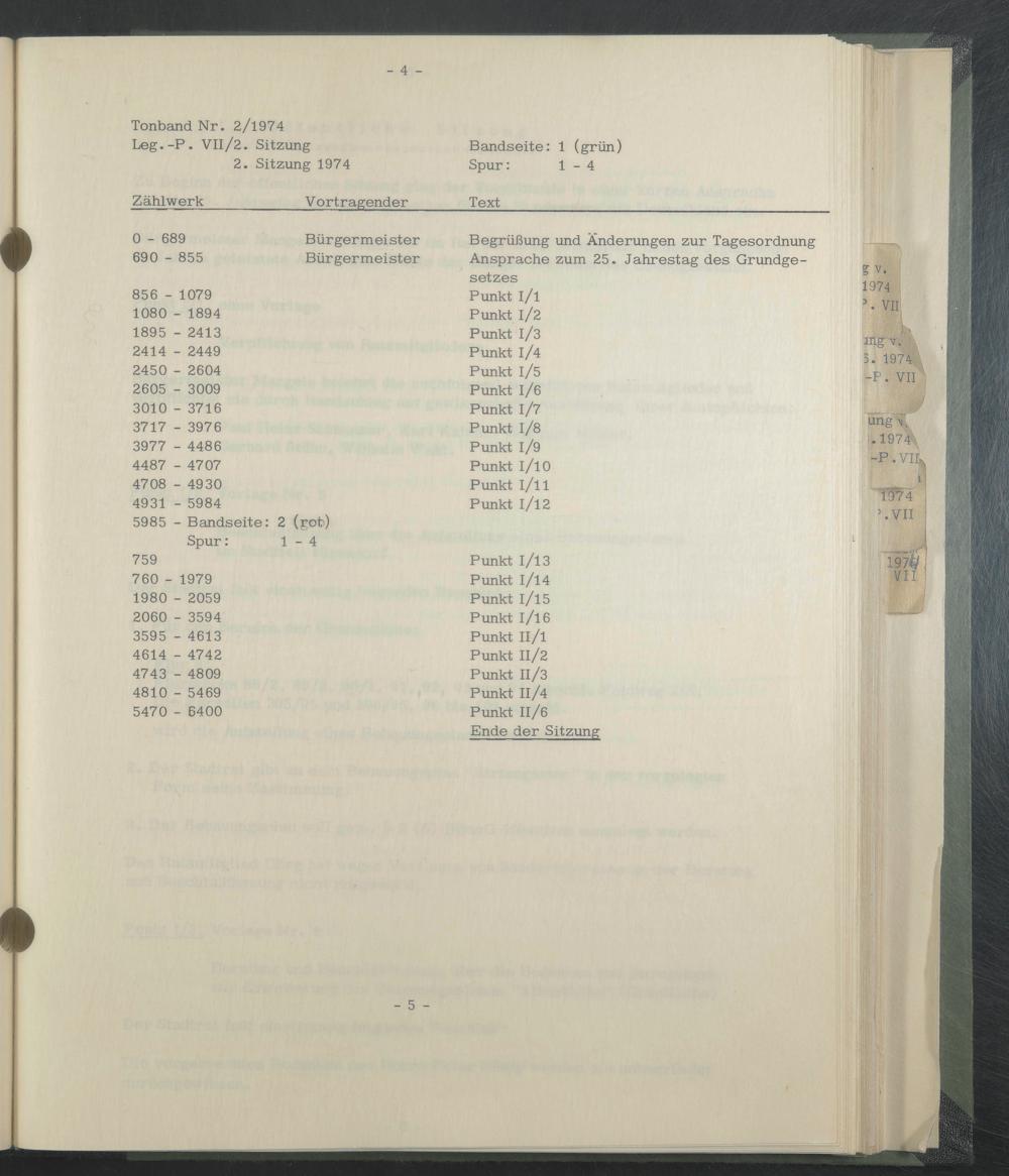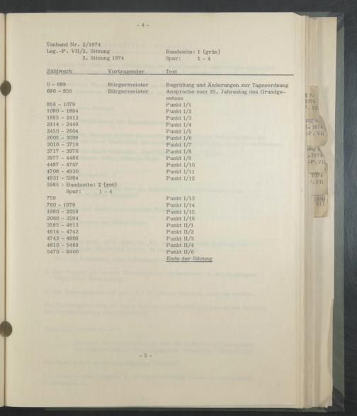 Tonband Nr. 2/1974 Leg.-P. VIl/2. Sitzung