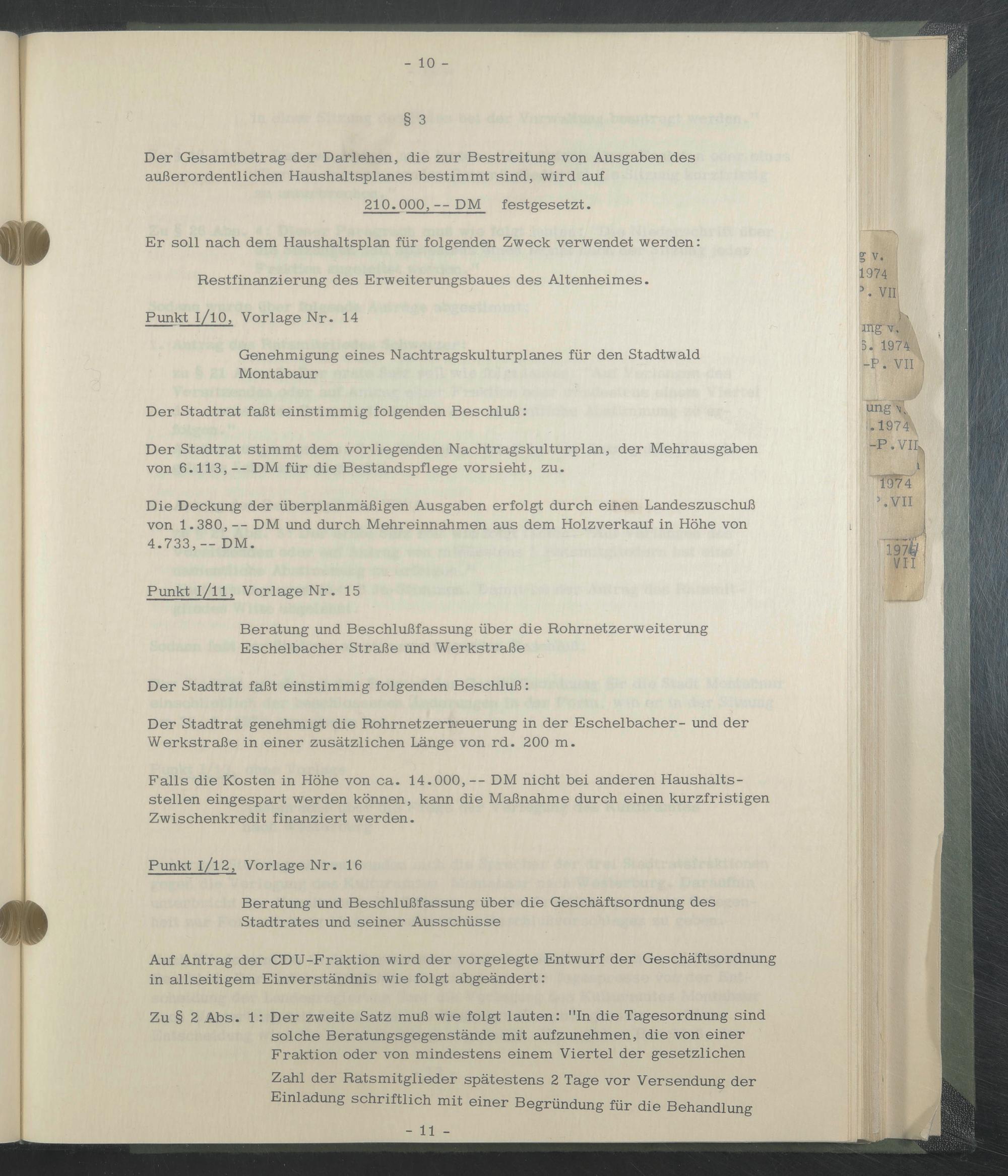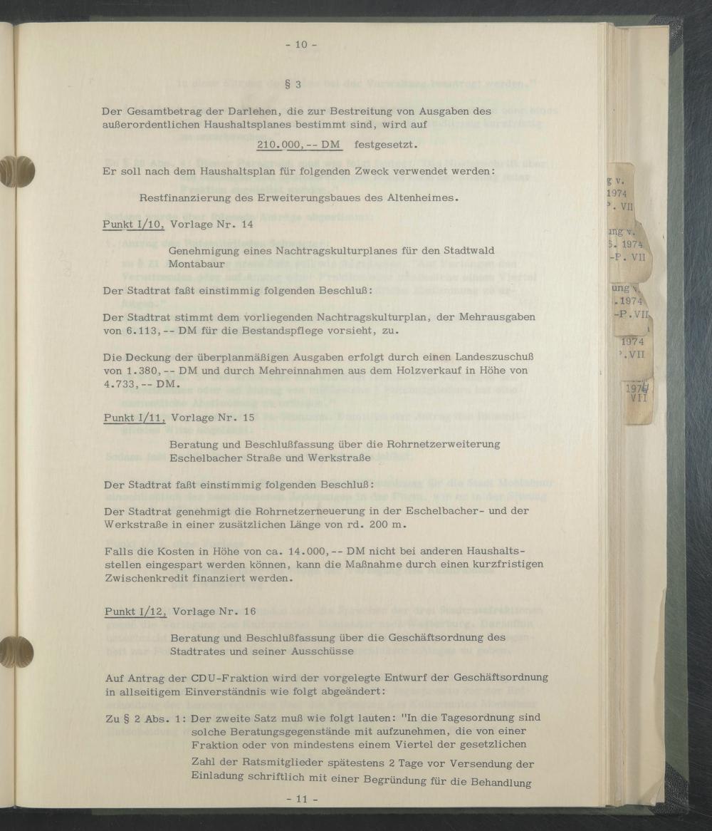Der Stadtrat stimmt dem vorliegenden Nachtragskulturplan, der Mehrausgaben von 6.113,— DM für die Bestandspflege vor sieht, zu.