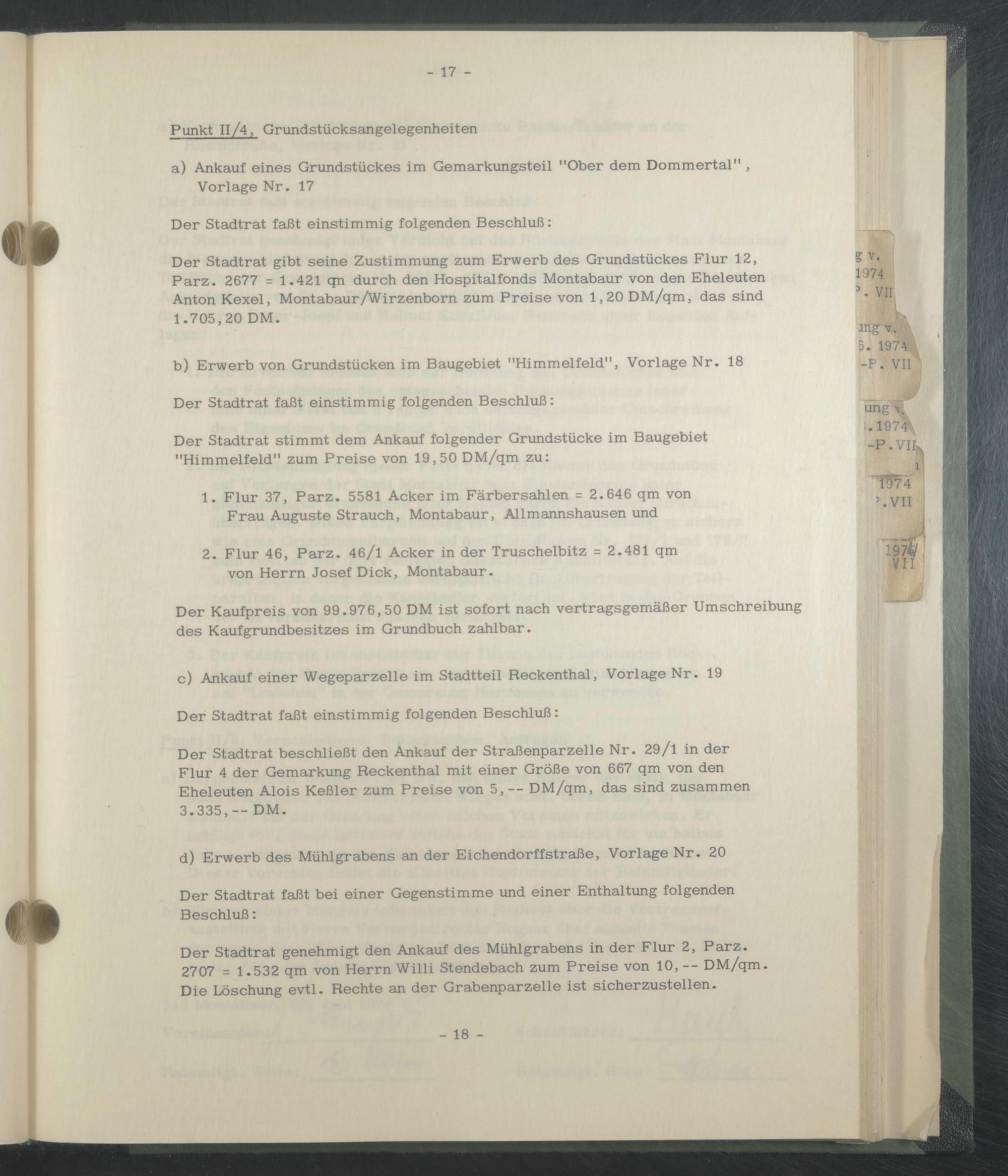 a) Ankauf eines Grundstückes im Gemarkungsteil "Ober dem Dommertal" , Vorlage Nr. 17