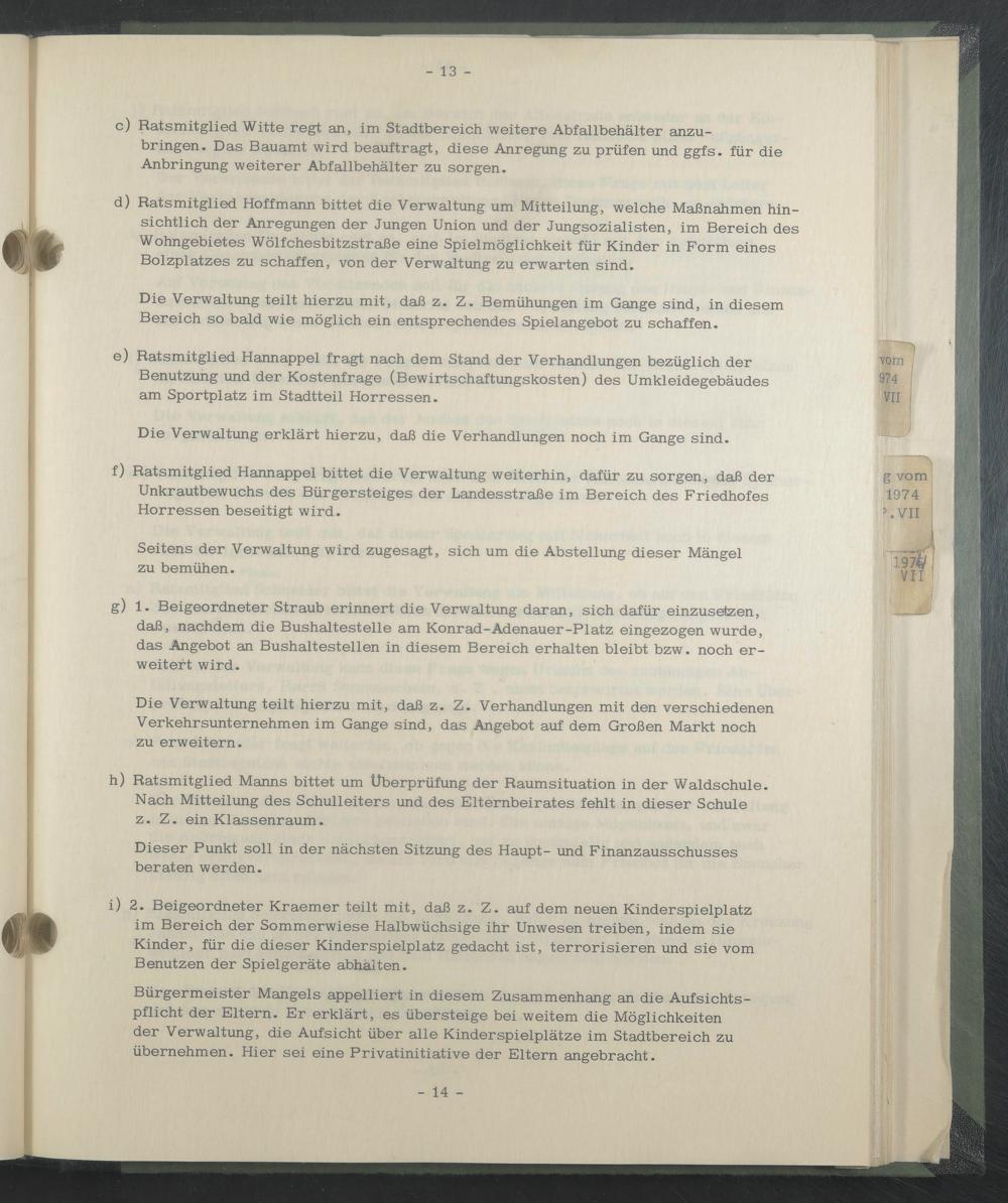 f) Ratsmitglied Hannappel bittet die Verwaltung weiterhin, dafür zu sorgen, daß der