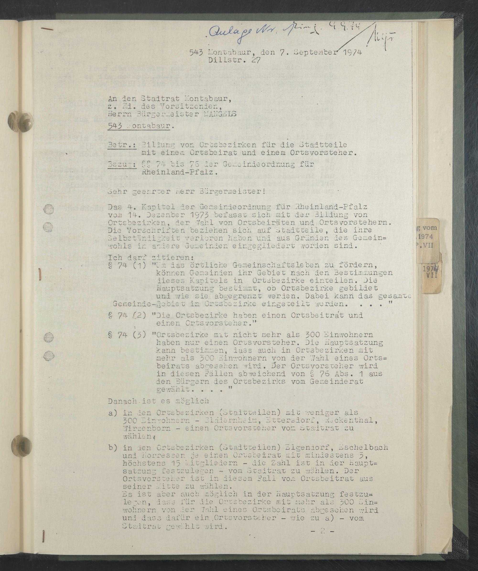 543 Lontabaur, den 7 . Eepteüiber 1974
