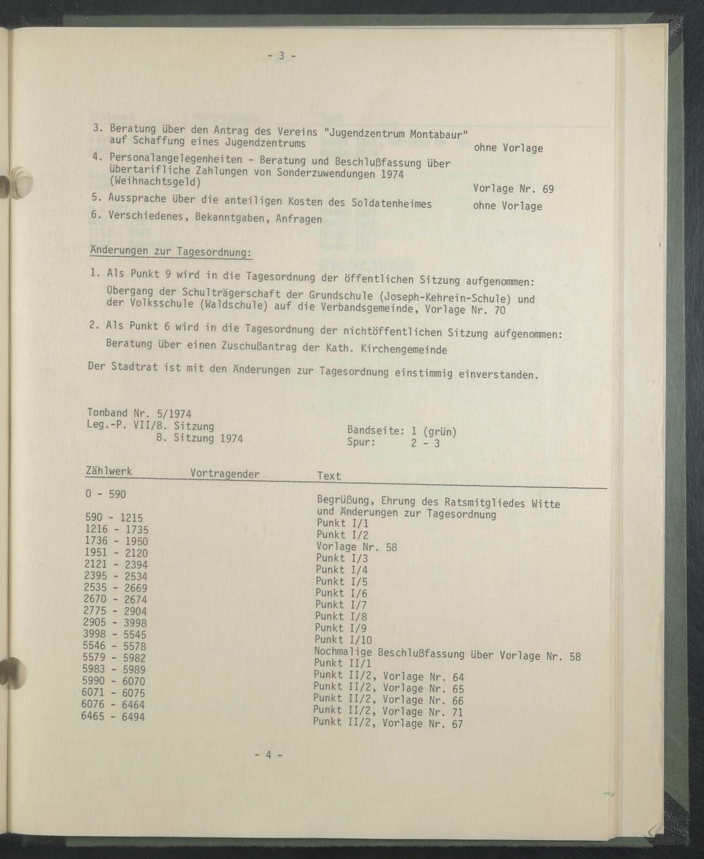 Tonband Nr. 5/1974 Leg.-P. VII/8. Sitzung
