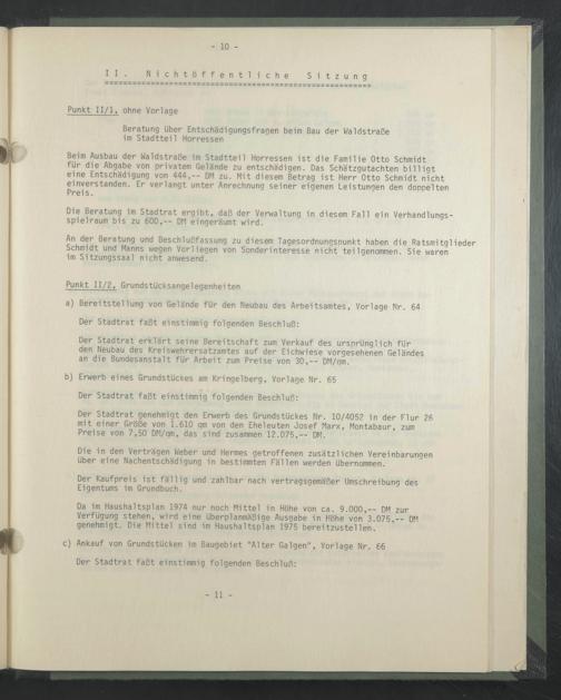 Beratung über Entschädigungsfragen beim Bau der Maidstraße im Stadtteil Horressen