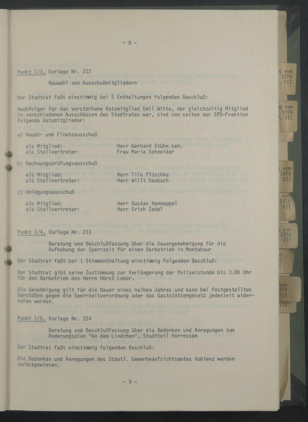 Nachfolger für das verstorbene Ratsmitglied Emil Witte, der gleichzeitig Mitglied in verschiedenen Ausschüssen des Stadtrates war, sind von seiten der SPD-Fraktion folgende Ratsmitglieder: