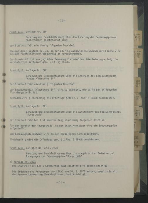 Beratung und Beschlußfassung über die Änderung des Bebauungsplanes "Große Alberthöhe IV"