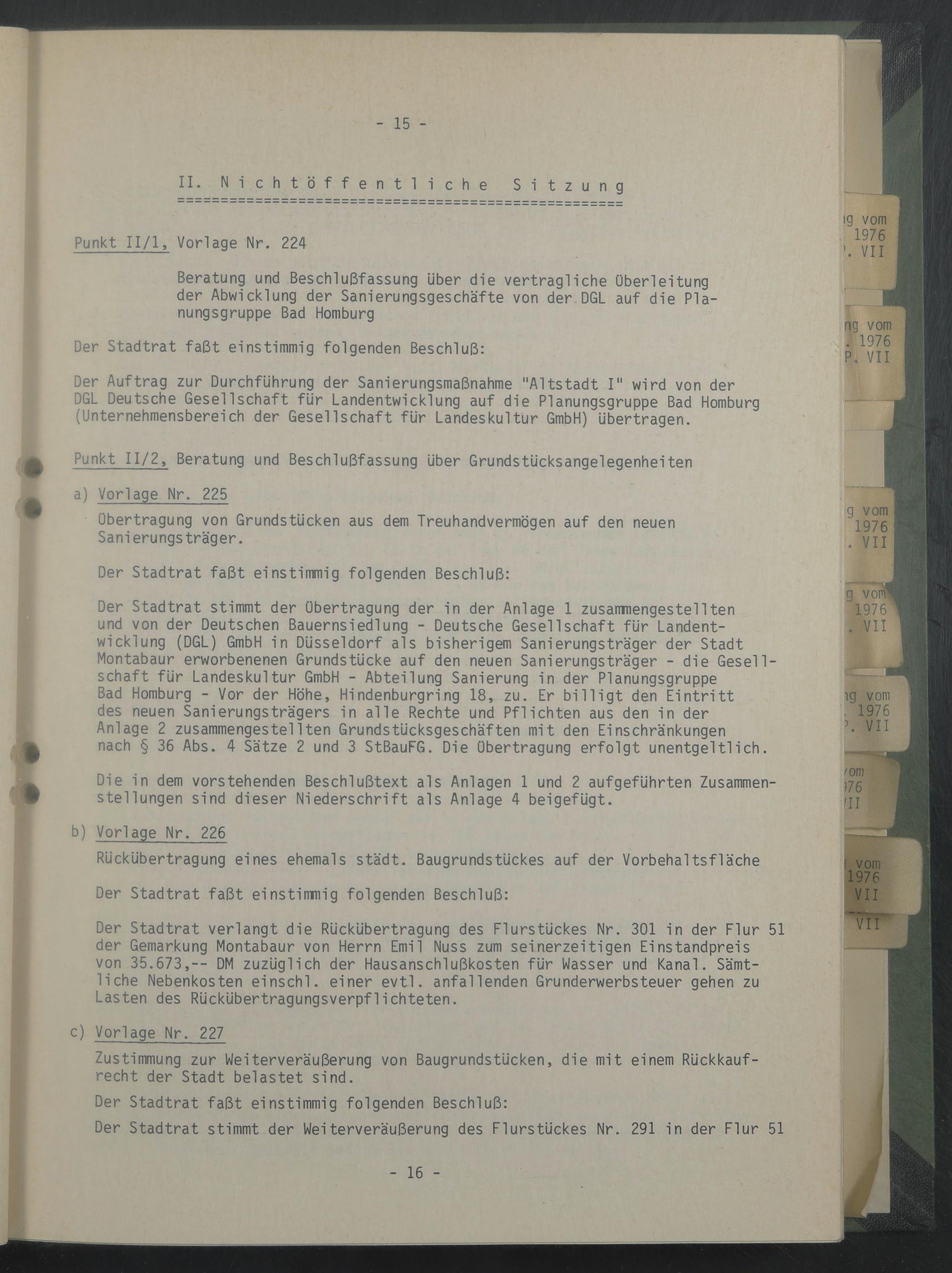 Punkt 11/2, Beratung und Beschlußfassung über Grundstücksangelegenheiten
