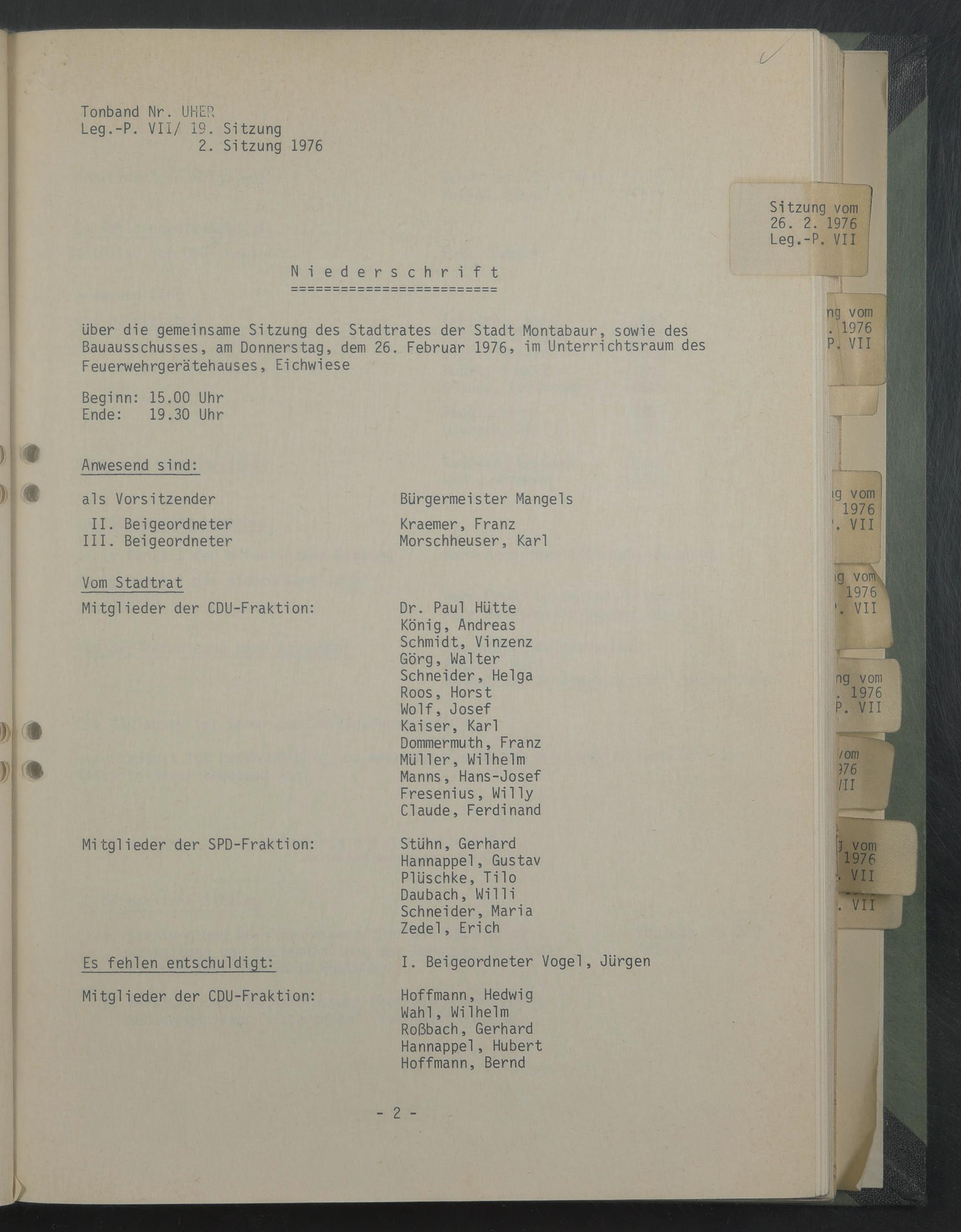 über die gemeinsame Sitzung des Stadtrates der Stadt Montabaur, sowie des Bauausschusses, am Donnerstag, dem 26. Februar 1976, im Unterrichtsraum des Feuerwehrgerätehauses, Eichwiese