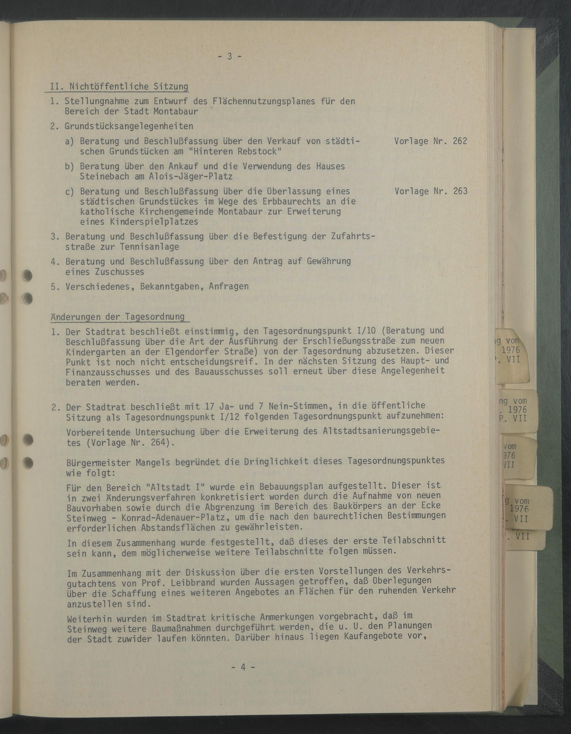 2. Der Stadtrat beschließt mit 17 Ja- und 7 Nein-Stimmen, in die öffentliche Sitzung als Tagesordnungspunkt 1/12 folgenden Tagesordnungspunkt aufzunehmen: