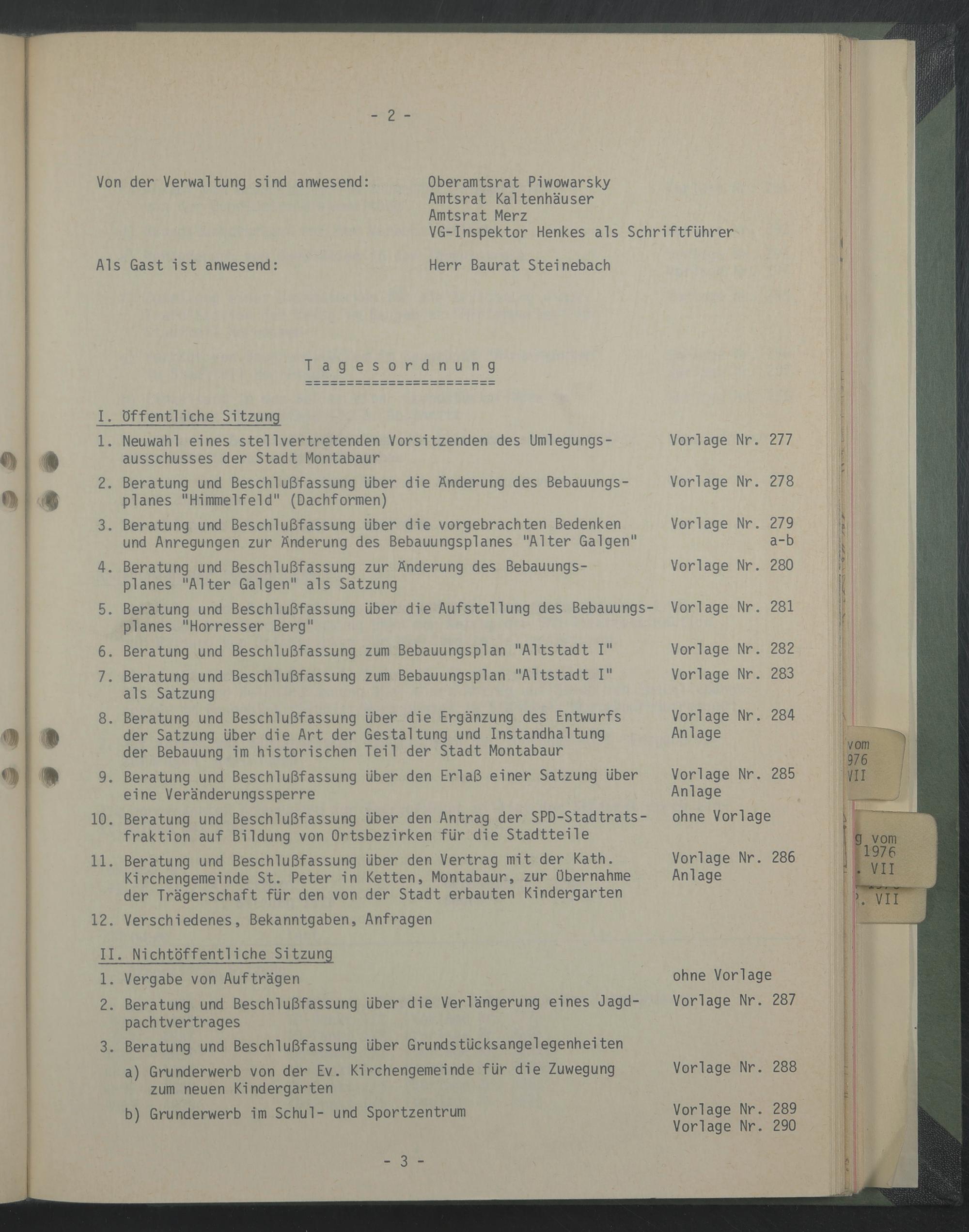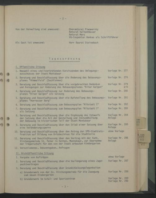 Von der Verwaltung sind anwesend: Oberamtsrat Piwowarsky