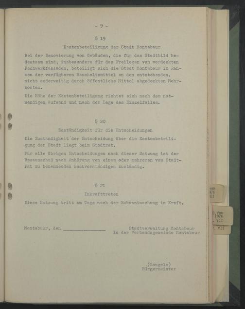 Bei der Renovierung von Gebäuden, die für das Stadtbild bedeutsam sind, insbesondere für das Freilegen von verdeckten Fachwerkfassaden, beteiligt sich die Stadt Montabaur im Rahmen der verfügbaren Haushaltsmittel an den entstehenden, nicht anderweitig durch öffentliche Mittel abgedeckten Mehrkosten.