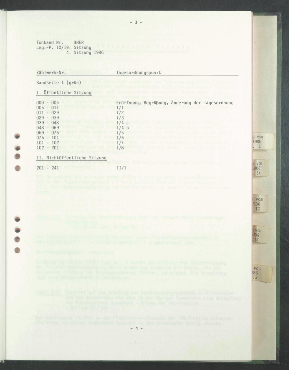 Tonband Nr. UHER Leg.-P. IX/19. Sitzung