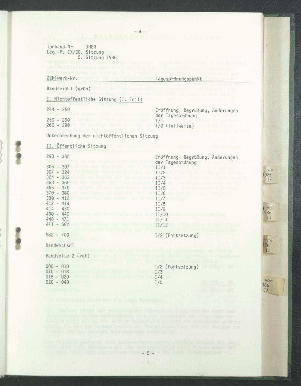 Tonband-Nr. UHER Leg.-P. IX/20. Sitzung