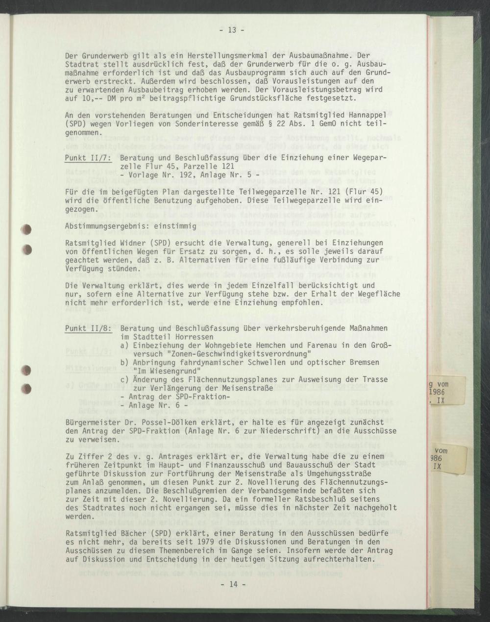 Punkt 11/8: Beratung und Beschlußfassung über verkehrsberuhigende Maßnahmen im Stadtteil Horressen