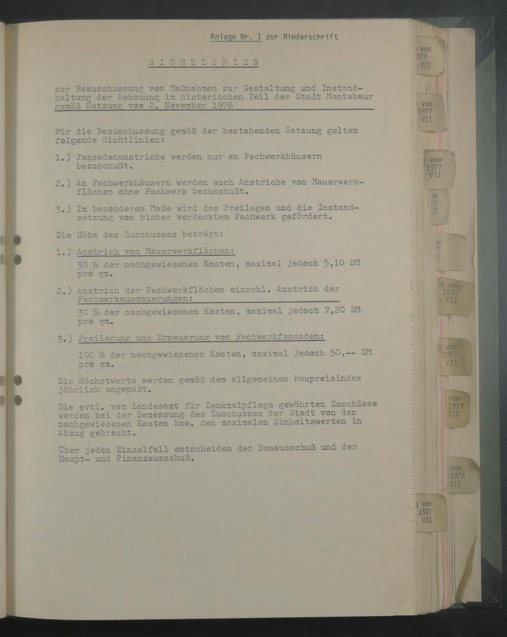 zur Bezuschussung von Maßnahmen zur Gestaltung und Instandhaltung der Bebauung in historischen Teil der Stadt Montabaur gemäß Satzung von 2. November 1976
