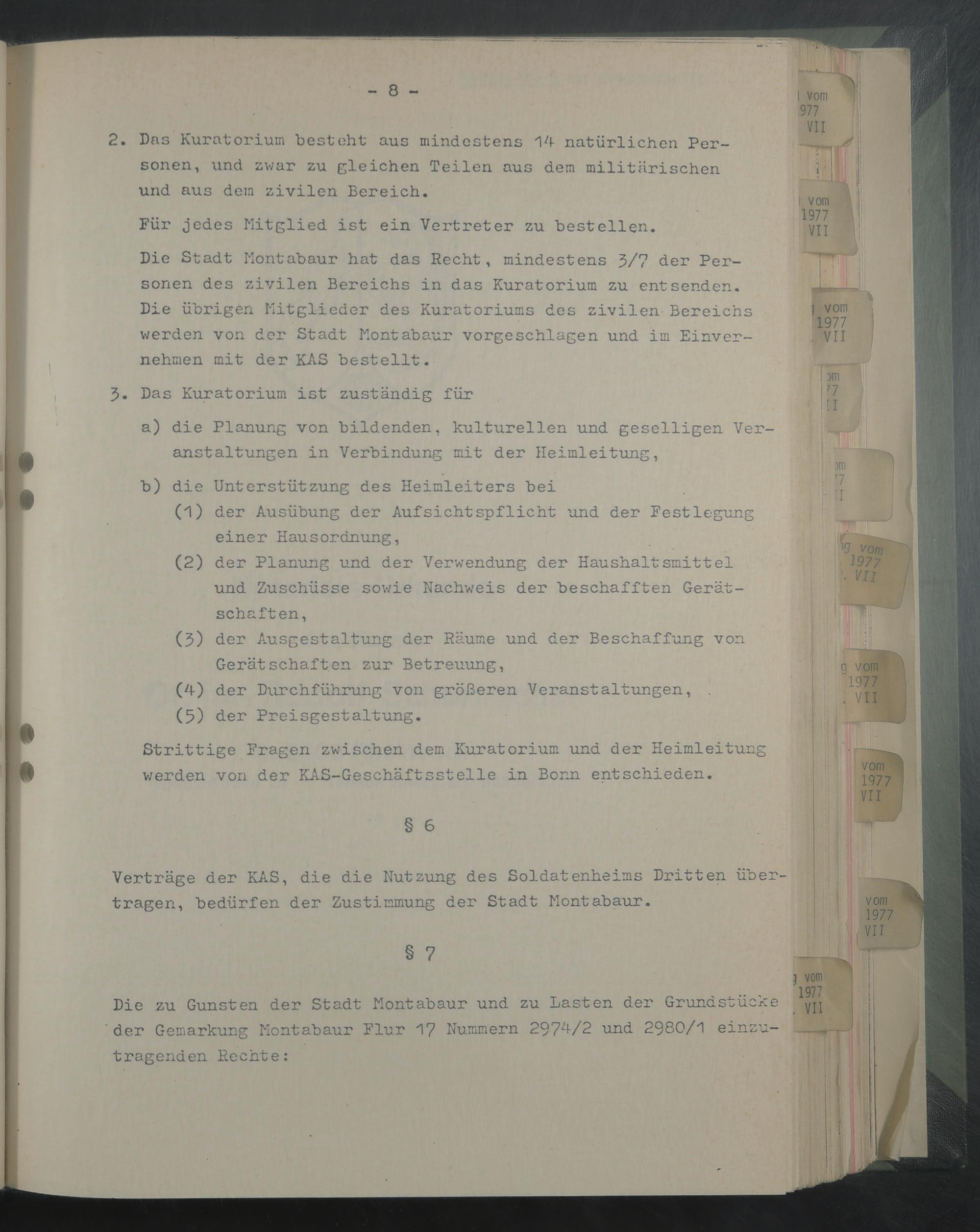 Verträge der KAS, die die Nutzung des Soldatenheims Dritten übertragen, bedürfen der Zustimmung der Stadt Montabaur.