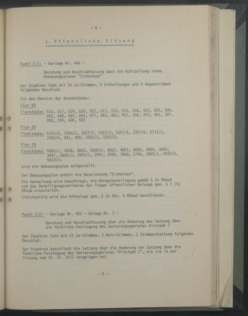 I. Öffentliche Sitzung