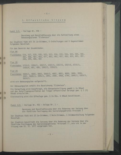 Gleichzeitig wird die Offenlage gern. § 2a Abs. 6 BBauG beschlossen.