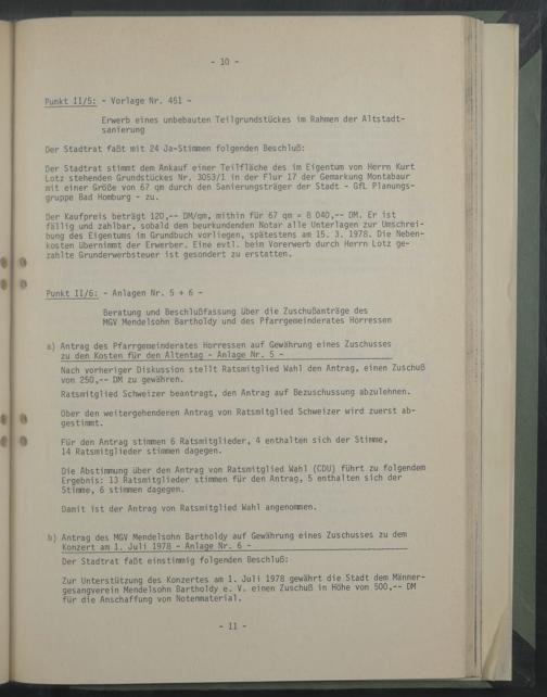 Beratung und Beschlußfassung über die Zuschußanträge des MGV Mendelsohn Bartholdy und des Pfarrgemeinderates Horressen