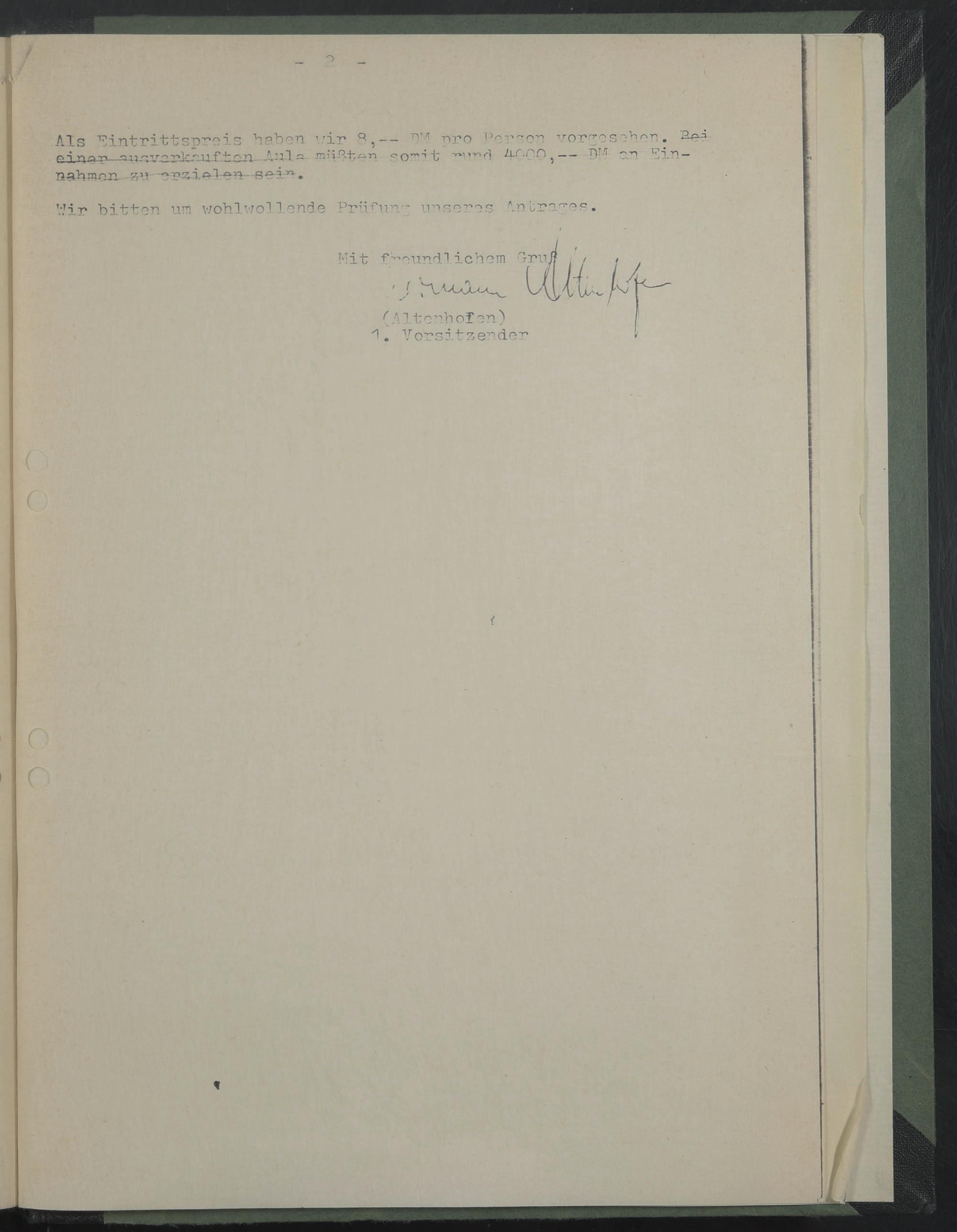 Als Eintrittspreis "heben wir ^,-- pro '^er^cn ^or^eseher.