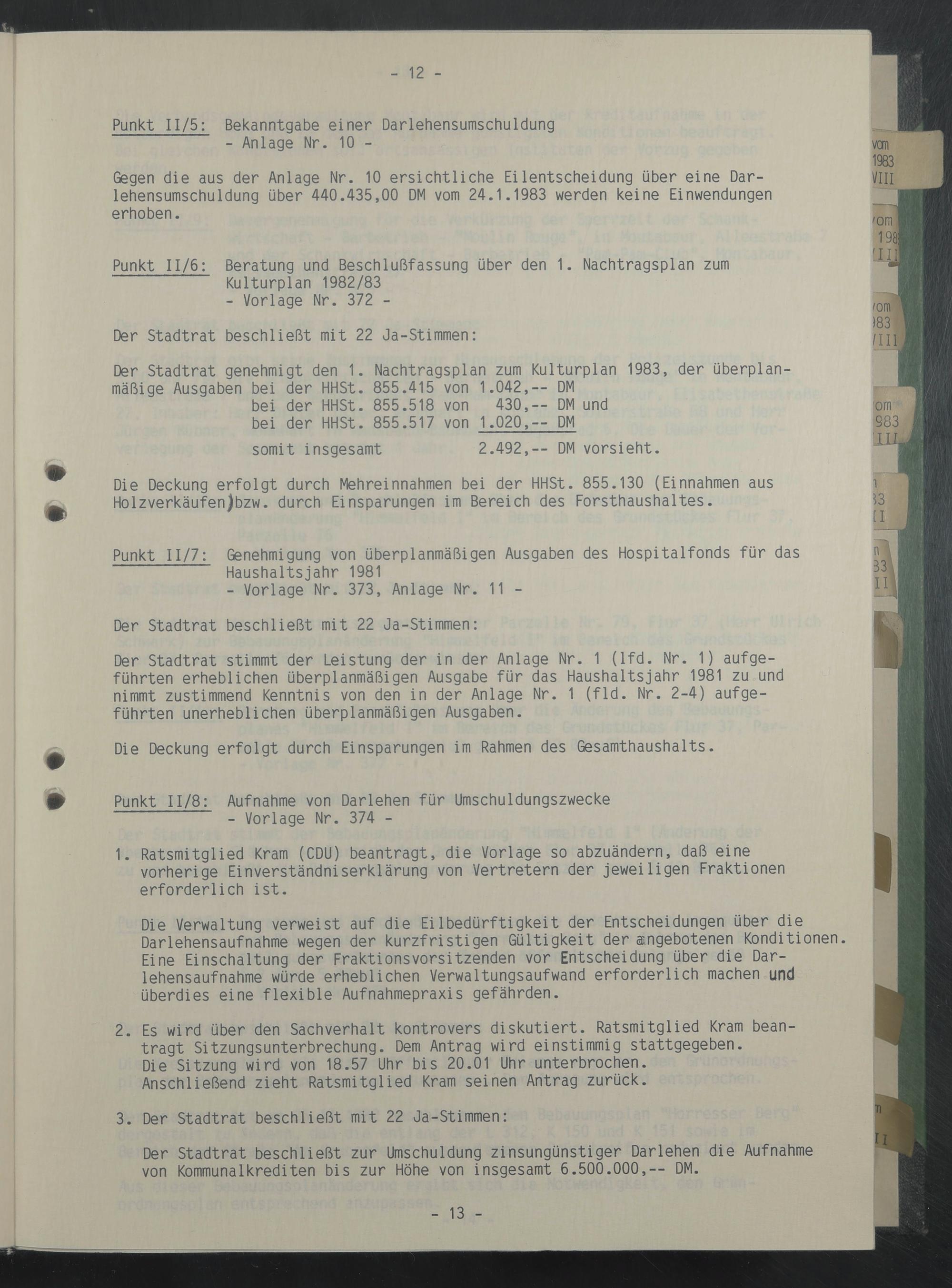 Punkt 11/6: Beratung und Beschlußfassung über den 1. Nachtragsplan zum Kulturplan 1982/83 - Vorlage Nr. 372 -