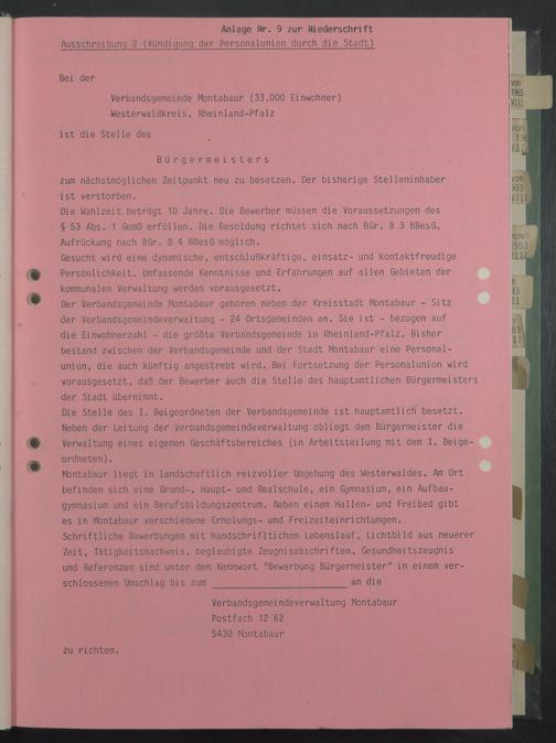 Ausschreibung 2 (Kündigung der Personalunion durch die Stadt)