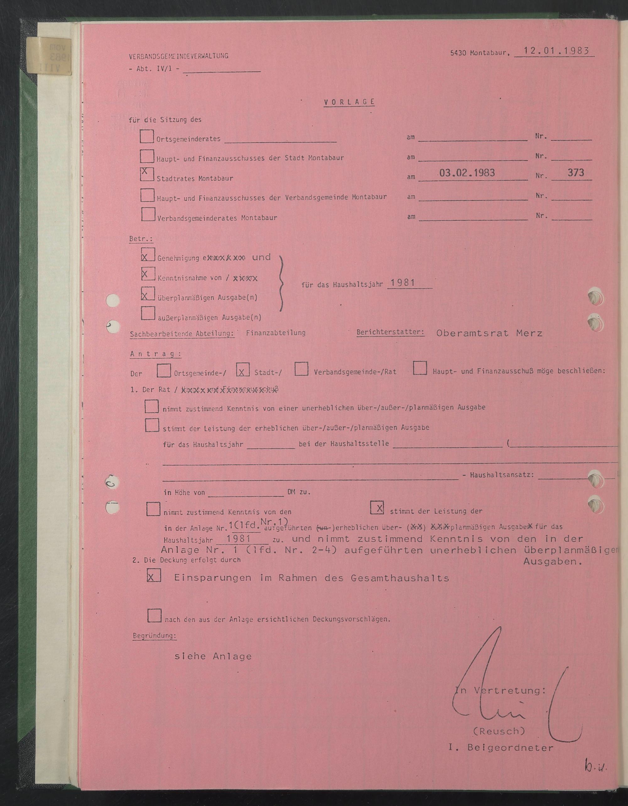Haushaltsjahr 19 81 zu. und nimmt zustimmend Kenntnis von den i