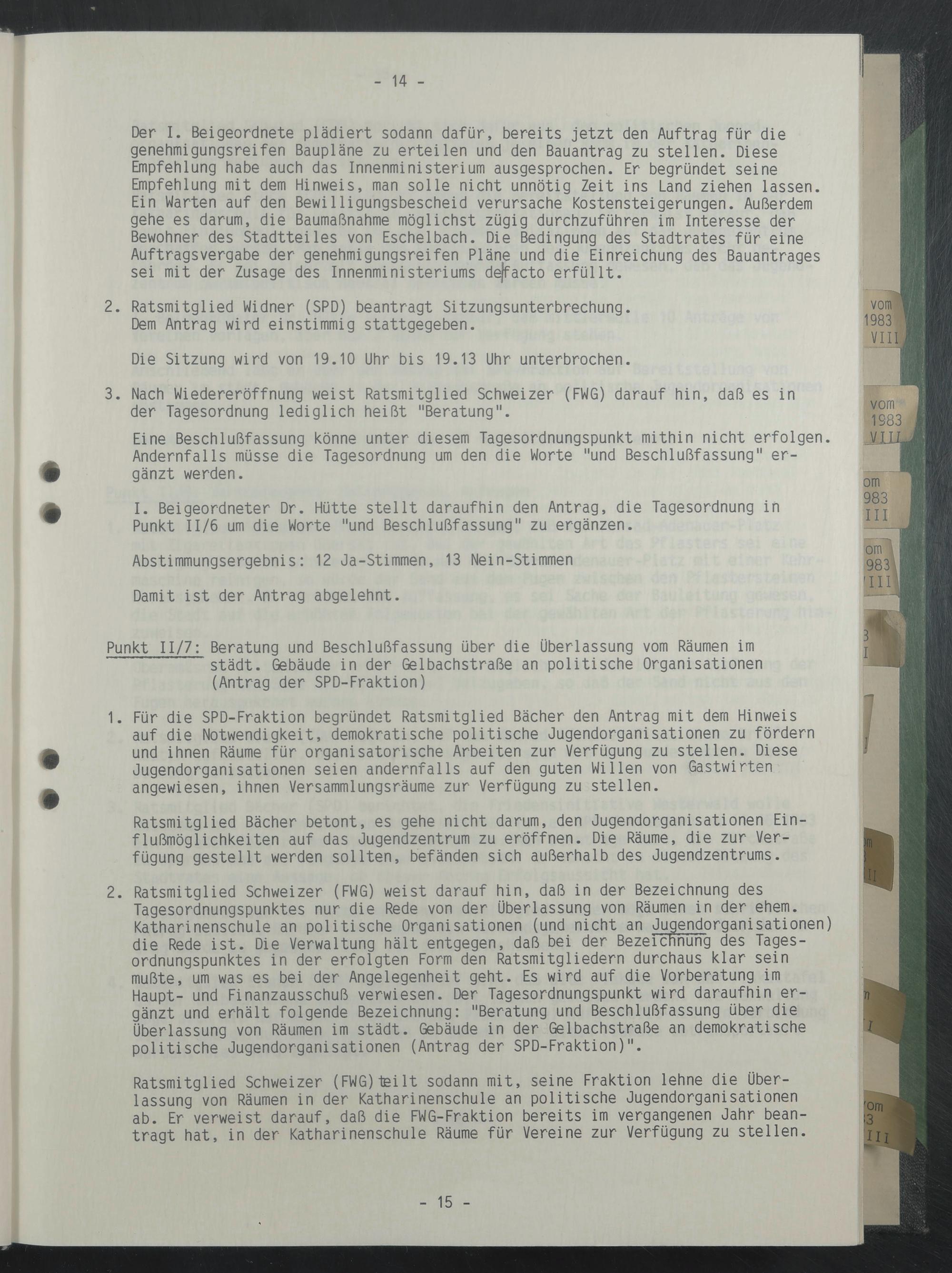 2. Ratsmitglied Widner (SPD) beantragt Sitzungsunterbrechung.