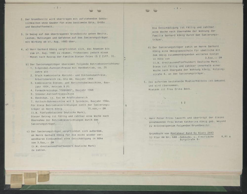 (i.W. dreitausendfünfhundert Oeutsche Mark). Diese ist fällig und zahlbar innerhalb einer Woche nach Übergabe der Wohnung König, Kolping- straße 6, an den Sanierungsträger.