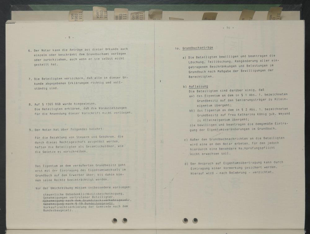 7. Die Beteiligten versichern, daß aiie in dieser Urkunde abgegebenen Erkiärungen richtig und voll- ständig sind.
