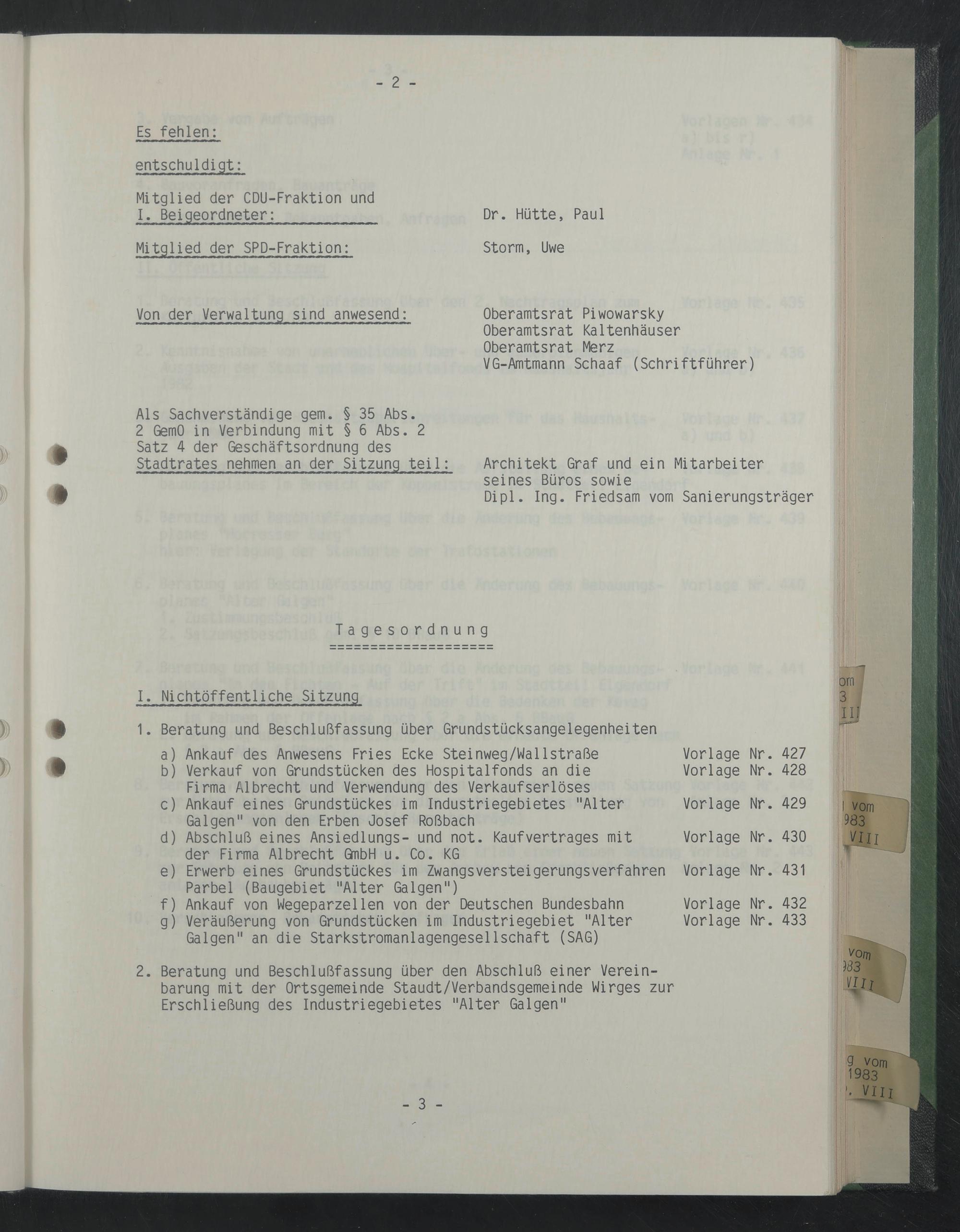 1. Beratung und Beschlußfassung über Grundstücksangelegenheiten