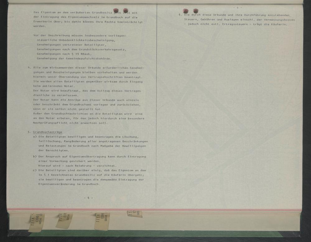 4. Alle zum Wirksamwerden dieser Urkunde erforderlichen Genehmigungen und Bescheinigungen bleiben Vorbehalten und werden hiermit unter Übersendung von Vertragsabschriften beantragt.