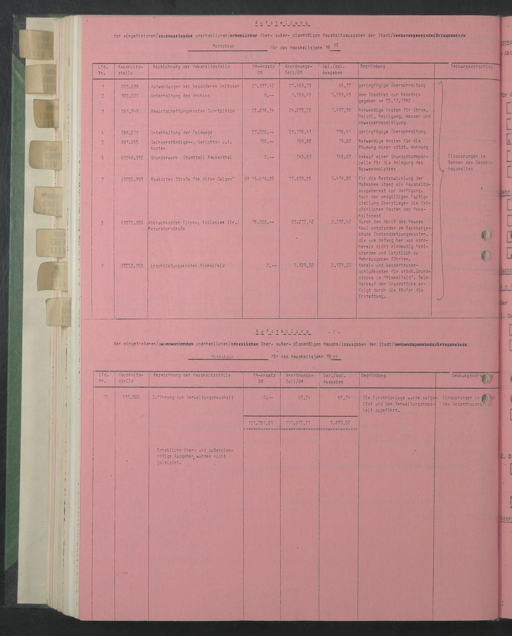 der einqetretenen/MxafwattiKKdga unerheblichen/efhBBiliibsit über- auBer- planmäßigen Haushaltsausgaben der Stadt/VettbamdsgemaindaffOx't^MWRd: