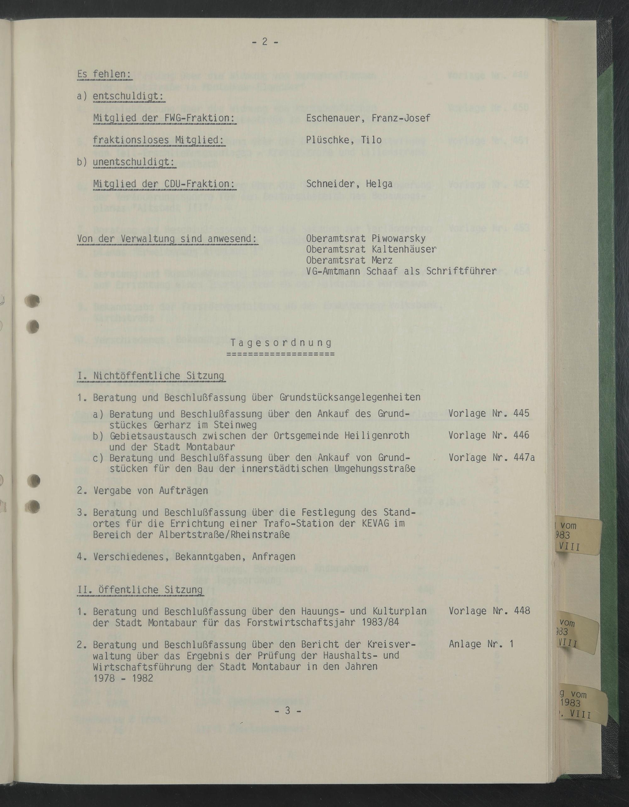 Von der Verwaltung sind anwesend: Oberamtsrat Piwowarsky