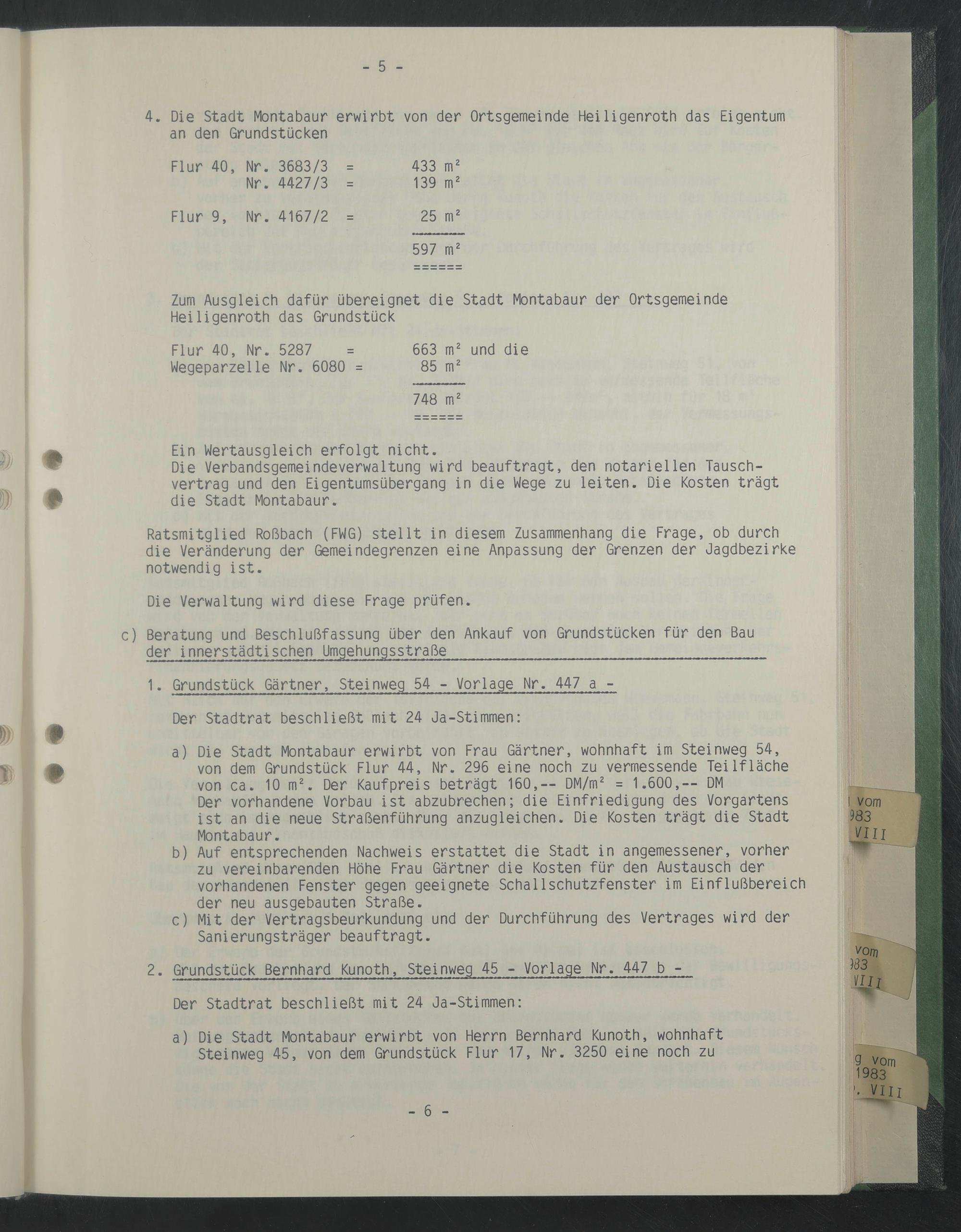 a) Die Stadt Montabaur erwirbt von Herrn Bernhard Kunoth, wohnhaft Steinweg 45, von dem Grundstück Flur 17, Nr. 3250 eine noch zu